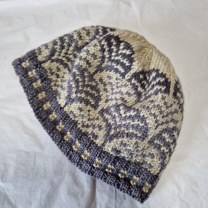 This hat is inspired by the clamshell pattern, popular in Art Deco art and design in the 1920s and 30s. It is designed to coordinate with the Clamshell Cowl.
