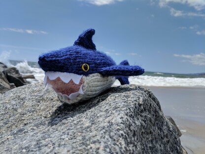 Clancy, Jr the shark is a cuddly undersea companion! Instant digital pattern download. Clancy Jr is a quick knit worked primarily in the round. Because vertical stripes are difficult to achieve in the round, Clancy’s blue body and white tummy are knit as two separate pieces and sewn together at the end.