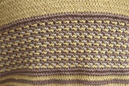 A classic top down raglan cardigan with stripes in 3 colors.