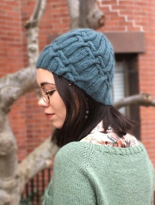 A spiraling cable motif adds interest to this ribbed unisex hat. Shown in Woolfolk Får.