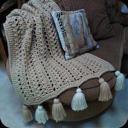 - This pattern uses Caron One Pound yarn, or other weight 4 yarn, 2 strands held together. It takes approx. 2 lbs. A bead was added on the tassels.