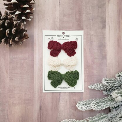 Beautiful, easy to follow crochet pattern for classic hair bows. TWO sizes are included. These are great for markets and craft fairs, or make a nice gift for little girls! You can also find listings for the bow cards (classic and seasonal) in my Etsy store. This pattern has lots of photos and details that make it easy to follow. --- Includes an Easy-Print page at the end! (No pictures, one page layout for easy printing!) --- This pattern is written in English in US Crochet Terms. There are detailed instructions and step-by-step photos to help along the way. This pattern was tested by crocheters of different skill levels. It is suitable for beginner level +