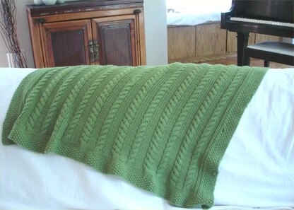 This blanket is the ultimate luxury and keepsake piece. Great for a boy or girl. This blanket is sized a little larger than the average baby blanket so your child can still use it as a toddler. Approx. 32"x 40". Sample was knit with 10 balls of Karabella Supercashmere but any soft chunky yarn will work.