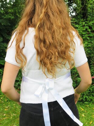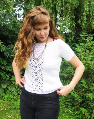 Summer Top with sleeves worked in one with body, has lace panel at centre front and ribbon ties at back.