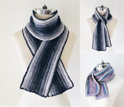 The Classic Crochet Ribbed Scarf is perfect EASY TO CROCHET pattern for everyone. Can be made with various colours of mini skeins or a solid or variegated sock weight yarn. A great yarn stash project that uses up your various yarn colours. You need 535 yarns or 480 m of sock or fingerling weight yarn to make this scarf. The Classic Crochet Ribbed Scarf is one you will wear for years to come.
