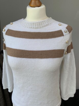 Two stripes are worked into the yoke and then a photo tutorial will show you how to overstitch the stripes for seamless raglan panels. The sleeve stitches are then separated and worked using the magic loop method at the end with 1 x 1 ribbing at the hem and cuffs.