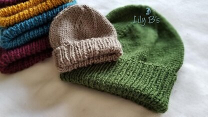 SIZE: Newborn, 0 to 3 months, sitter, toddler, child, teen and adult (7 sizes) SKILL LEVEL: Beginner, but you must be able to knit in the round YARN WEIGHT: Patons Canadiana, #4 medium worsted NEEDLE SIZE: 5mm (US8) TECHNIQUES USED: Knit, purl, knitting two stitches together. TIE OPTIONS: n/a LANGUAGE: English TERMINOLOGY: Standard US