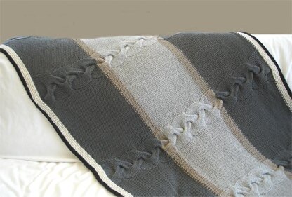 This afghan is large enough to snuggle under on the couch and still small enough to leave draped as a piece of artwork. Knit with a bulky yarn or a chunky weight yarn a little loose you can't go wrong. The unique cable combined with the stripes turn the average throw into a painting. There are so many color ways that will look great. Sample was knit with Grignasco Cashmere Soft. Finished measurements approx. 40"x 64".