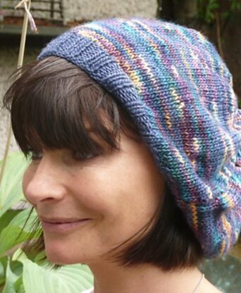 This is a classical beret that I have knitted in Manos silk blend wools. I have contrasted the border to the main piece but it could be knitted in one colour. I have also knitted the beret in DK Humminbird alpaca. I stock the kit for making this item.
