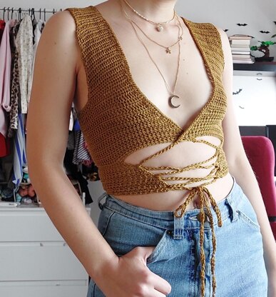 This top is perfect for Summer vacation. You can wear it with the lacing in the front or in the back. It is very sexy, versatile and interresting design. Wear it with a cute bralette or over a blause if you want more coverage.