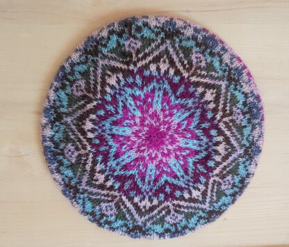This is a pattern for a knitted tammy worked using the stranded colourwork technique and worked from the bottom rib up with decreases shaping the crown.