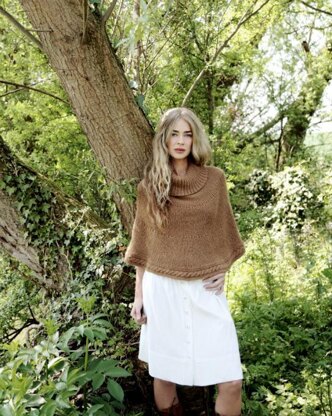 Cleo is a fabulous, versatile garment that can be worn in different ways – as a skirt or as a poncho (with the ribbing making the roll neck). Cleo is really interesting to make as it includes several techniques such as circular knitting, ribbing, cabling and short row shaping. With only one seam to finish and the border integrated into each row, Cleo is an addictive knit!