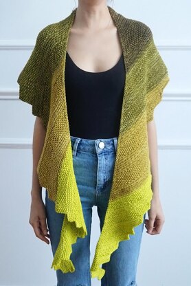 Whether worn as a shawl, scarf, or cowl, Cloris has plenty of details to keep you engaged from point to point! Knit diagonally from end to end, this shawl features alternating sections of garter and seed stitch and a curved edge accentuated by graduated points. The round, bouncy hand of Audine Wools’ Superwash DK ensures an enjoyable knit with a lively color change. Which end of the skein will you use?