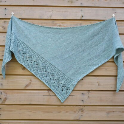 This is a slightly asymmetrical triangular shawl that features a simple yet stunning twisted stitch edge. The pattern features simple one stitch cables using twisted stitches, and simple lace YO.