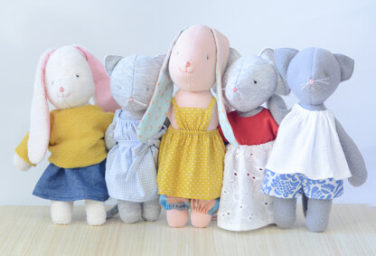 A sewing pattern to make clothes and accessories for your small stuffed mouse plush, stuffed dog, stuffed bunny rabbit and/or stuffed kitty cat.