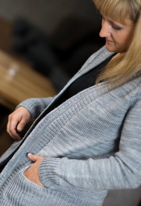 Cloud Bay is worked from top to bottom and shaped with increases at raglan seams. It is worked in Stockinette st to show the true beauty of the yarn. There are also two afterthought pockets nicely hidden in the ribbed hem. The ribbed front band is broken with a couple of Garter stitch ridges and neatly finished with I-cord BO to give a unique look to this simple cardi. This cardigan will sure become a staple piece in your wardrobe.