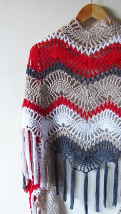 Cloudburst is a triangular shawl made of stripes joined together. Shawl has elongated, wide triangle shape and scalloped edge (see last photo for schematic picture). Pattern both written and charted.