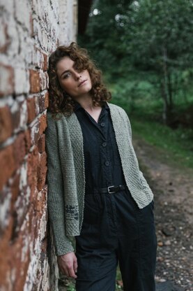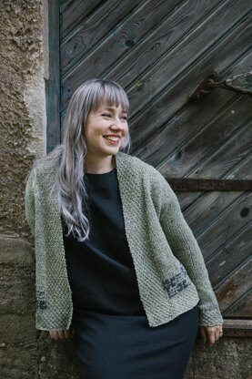 Clover is a classic cardigan worked flat, top down. The cardigan features raglan sleeves, a slightly A-line shape and a cute little clover color work on the hem. The shawl collar, hem and cuffs are worked in moss stitch.