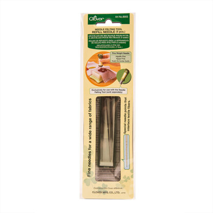 These Felting Refill Needles can be used with all Clover needle-felting tools and come in two sizes; fine and heavy weight. The barbed needles are very strong and will give a finer edge to your textile work. The finer needle pierces thinner material much more easily and accurately and the heavy weight needles are ideal for attaching felting to hand knitted garments and accessories.
