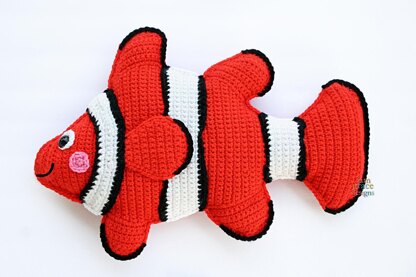 Our finished Clown Fish Kawaii Cuddler™ is 13" x 17”. Hook size, yarn choice, and crochet tension will affect each individual result.