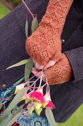 A delicate stitch pattern adorns these very pretty fingerless mitts. A modified Persian lace runs the length of the mitts and is balanced out by a reverse stocking stitch base. The circular motif of the stitch pattern is repeated on the thumb gusset. The pattern pays homage to the flavours of the Scullery Made tea that bears the same name; citrus, cinnamon, cloves and calendula. These mitts are for wrapping around a good cup of tea and embracing nature.