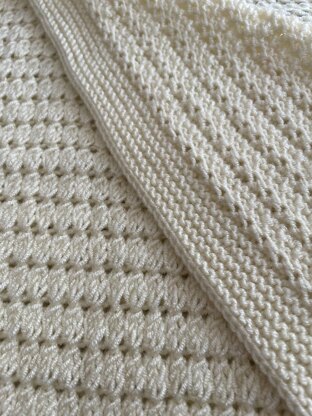Different weighted yarns can be used for this baby blanket. Please note that if you should use a different weighted yarn, the measurements might differ. Adjust your material requirements accordingly. This pattern can easily be adjusted in width and lenght by adding or reducing the stitches as indicated in the pattern.