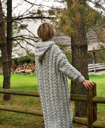 MATERIAL NEEDED YARN 16 balls Wool Tweed Superbulky Beige (100 gr – 120 m) (3.53 oz – 131 yards) or color of your choice. Yarn weight Superbulky. Weights may change. The weight of yarn to give for Orientation. Yardage – 2100 yards (1920 meters). GAUGE 10.5 sts and 17 rows to 10x10 cm (4x 4") in St st. BE SURE TO CHECK YOUR GAUGE. Use any size needles to obtain the gauge. NEEDLES 5 mm (US size 8, UK size 6) knitting needles 6.5 mm (US size 10.5, UK size 3) circular knitting needles OR SIZE TO OBTAIN GAUGE Cable needle 3 Stitch Holders (Medium 11 cm – 4 in). 1 push button for clothes Darning needle (for sewing in ends)