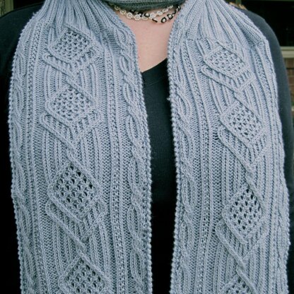 If you love knitting intricate cables, you’ll love knitting this scarf. The scarf combines two distinct cables as well as mock cables. The border cable, which is simpler is also a very unique and special Japanese cable stitch. Although the scarf is knitted with sport weight yarn, requiring between 600 and 800 yards, the turtleneck section will keep you warm even on the coldest of day. It is knit on a size #4 (U.S.) needle.