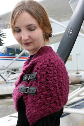 Named for Jacqueline Cochran, the mastermind at the helm of the WASP (Women Airforce Service Pilots) program during WWII, this beautiful cowl-cum-shawl encapsulates most of the elements of the self-published Leather, Lace, Grit & Grace: lovely textured crochet lace, great leather notions, the ability to keep the wearer warm in the grittiest of situations, and the grace to look great dressed up or down.