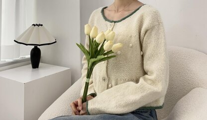 Coconut cardigan is a solid but light, so it’s good to wear lightly in spring and autumn. I designed the pattern thinking of coconut powder and fruit. In addition to this, cropped length(can be adjusted) and simple colorwork will make your cardigan more lovely. For the cardigan, make back and start to work front from it. And then the body will be knitted by top-down method. So length can be adjusted as you want. (There is about 15-20cm positive ease with the sample.)