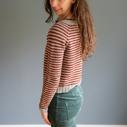 In 2009 I released [Little Coffee Bean][1] cardigan, one of my very first designs. And 10 years later, I'm so happy to release this adult version of the design! Why should only babies have all of the striped cardigan fun? Coffee Bean is a simple top-down, seamless cardigan and would make a great first sweater for beginner knitters (or just a fun, relaxing knit for those more experienced). It uses worsted-weight yarn (I used Berroco’s Ultra Wool) and features an easy 2 row striping pattern. I also created a tips page that includes some helpful photo tutorials (links in pattern). The hardest part will be deciding on which 2 colors you want to pair together!