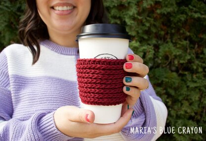Finished cup sleeve fits a standard to go cup. When laid flat, it measures 4.5" across.