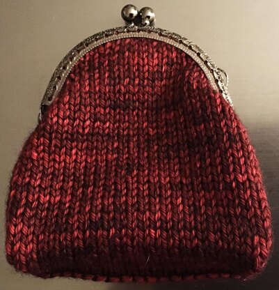 Fun little coin purse with an optional handle. You will need a 3.35”/8.5cm purse frame. This is a quick knit with details on finishing included in the pattern. Knitted portion is sewn into the frame; don't let this scare you, it's pretty easy!