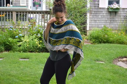 The Collage Crescent is an artful collage of stitches, techniques and different mediums. The crescent-shaped shawl is composed of a knit body featuring stockinette, purl bump rows, eyelets, and embossed stitches. The edging is worked in a simple crochet pattern. After the shawl is complete, the embroidery chain stitch and French knots are worked on the stockinette sections creating a special embellished design. Knit up in The Fibre Company’s Cumbria Fingering yarn, this shawl is warm, fuzzy, and has a lovely romantic drape!