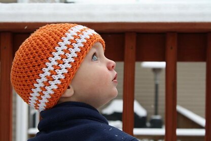 Listing is for a pattern to make your own hand crocheted Collegiate Beanie.