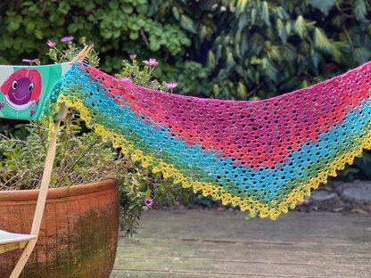 The shawl is finished with a textured border row.