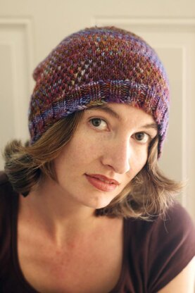 Color Break is a simple pattern that works wonderfully with highly variegated yarns, breaking up the colors and preventing pooling. The simple slip-stitch pattern creates a thick fabric with a great deal of texture, for a very warm hat without a lot of extra effort. For such an easy pattern the result is very dramatic in a variegated yarn, and attractive as a texture in a one-color yarn.