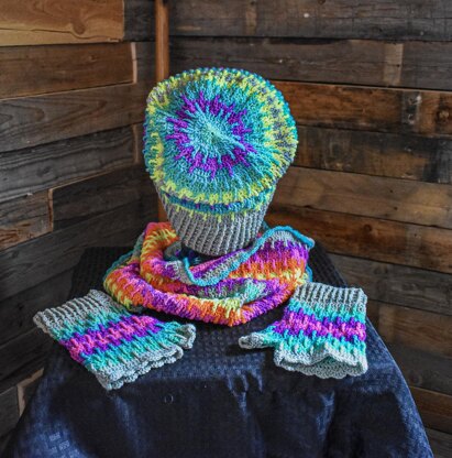 I used 2 sets of minis and one full skein to make all three piece in the largest sizes.