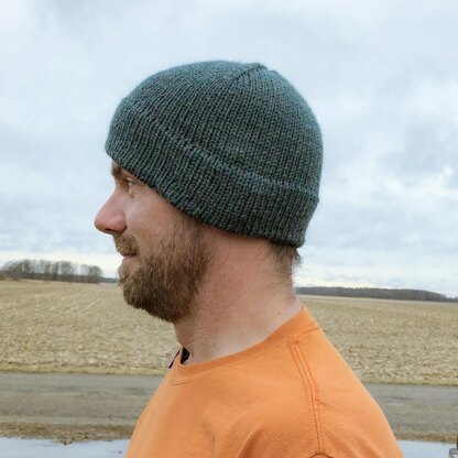 Color Pop Toque is a double brimmed knit hat with the first half of the brim worked in a contrasting color that just peeks over the folded edge. The toque can be knit with one color, or as the grey sample shows, with a pop of color on the bottom edge of the brim.
