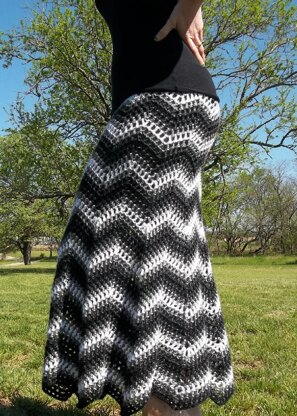 Fun skirt that works up amazingly quick with a large hook. Using different shades of the same color the striping gives it an ombre effect.