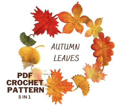 Create beautiful fall decor with this crochet pattern bundle for 5 unique autumn leaves (maple, oak, birch, ginkgo, and chestnut). The 60-page PDF includes written patterns (in English, using standard US terms), chart diagrams, and numerous photo instructions with a coloring tutorial. Each leaf takes between 30 minutes to 1 hour to complete and can be used to create wall hangings, wreaths, garlands, frames, greeting cards, and more. Perfect for intermediate crocheters who love DIY projects and learning new things. Make your Thanksgiving decor stand out with these unique crochet leaves!