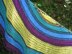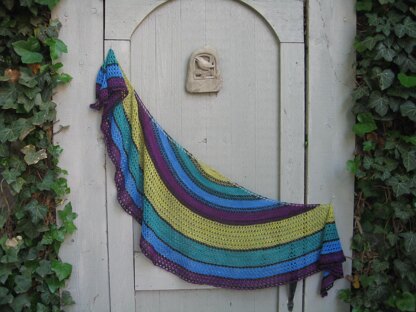Put down all those adult coloring books and start coloring with your yarn. I call this, "Coloring Outside of the Lines," because it looks like I grabbed any color I wanted and colored outside every line. The black lines in the top part of the shawl are slipped stitches; so, there is no fancy color work; and, on the lower half of the shawl the black line is two rows of a simple lace pattern. The lace pattern is also a kind of "outside the box" pattern, because you work all your increases in the first row, and get back to your normal stitch count on the third row. I bound off with a color to continue the theme of coloring outside of the lines.