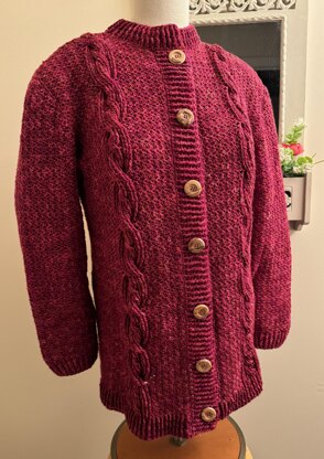 This beautifully cabled crochet cardigan is named for the ancient city of Colossae, which was famous for their red and purple dyed wool. It features a double twisted crochet cable and elongated cables trimmed with wattle stitching and ribbing. This can be either a vest or a cardigan, depending upon your preference.