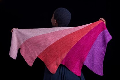 Shawl in vibrant colours: seashell, pickled ginger, sunkissed coral, ruby and bordeaux