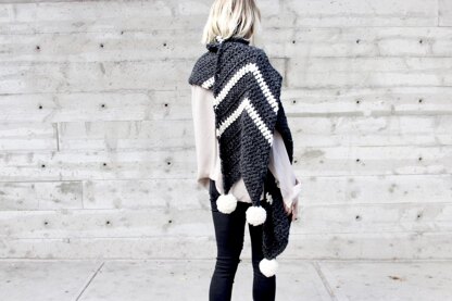 Fight off the blustery winter weather in style with this oversized “super scarf.” Whether it’s worn draped over the shoulder like a long shawl or wrapped around the neck for extra warmth, the super bulky crochet fabric is sure to keep you toasty. The scarf is extra long and wide but not overwhelming, and the uneven stripes and asymmetric pompom detail add a touch of intrigue and sophistication.