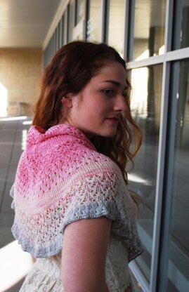 Semi-circular with stockinette, lace & eyelet sections that end with a beautiful eyelet ruffle & finished with a beaded bind off. The beads are optional but add so much to the look and feel of the shawl.