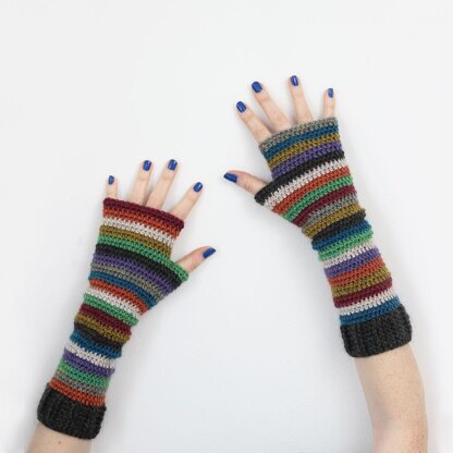 The wrist warmers are worked from the cuff up, increases are made before separating to create the thumb. My wrists are 14.5cm circ. Anything less than 14cm and you should aim to make the Small. Anything more than 17cm and you will probably need to make the Large size.