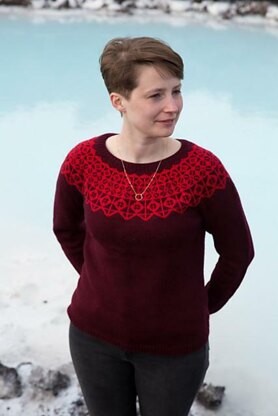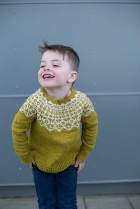 A subtle and delicate pattern radiates from the neckline of this classic yoke sweater.