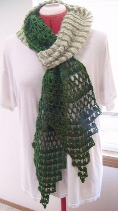 The middle piece is knitted first with Mohair Glitter and Eyelash yarns alternating every two rows. The two lace edges are crocheted later. It can be knitted wider as a stole. It is suitable for all types of yarn and colours too. Gauge is unimportant.