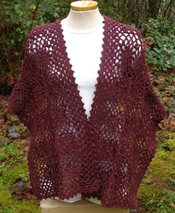 This lovely accessory is crocheted with two different motifs each complementing the other. The motifs are alternated to create a unique pattern and are joined as you crochet. The stole is completed with several rows of a complementing border and edged with picots.